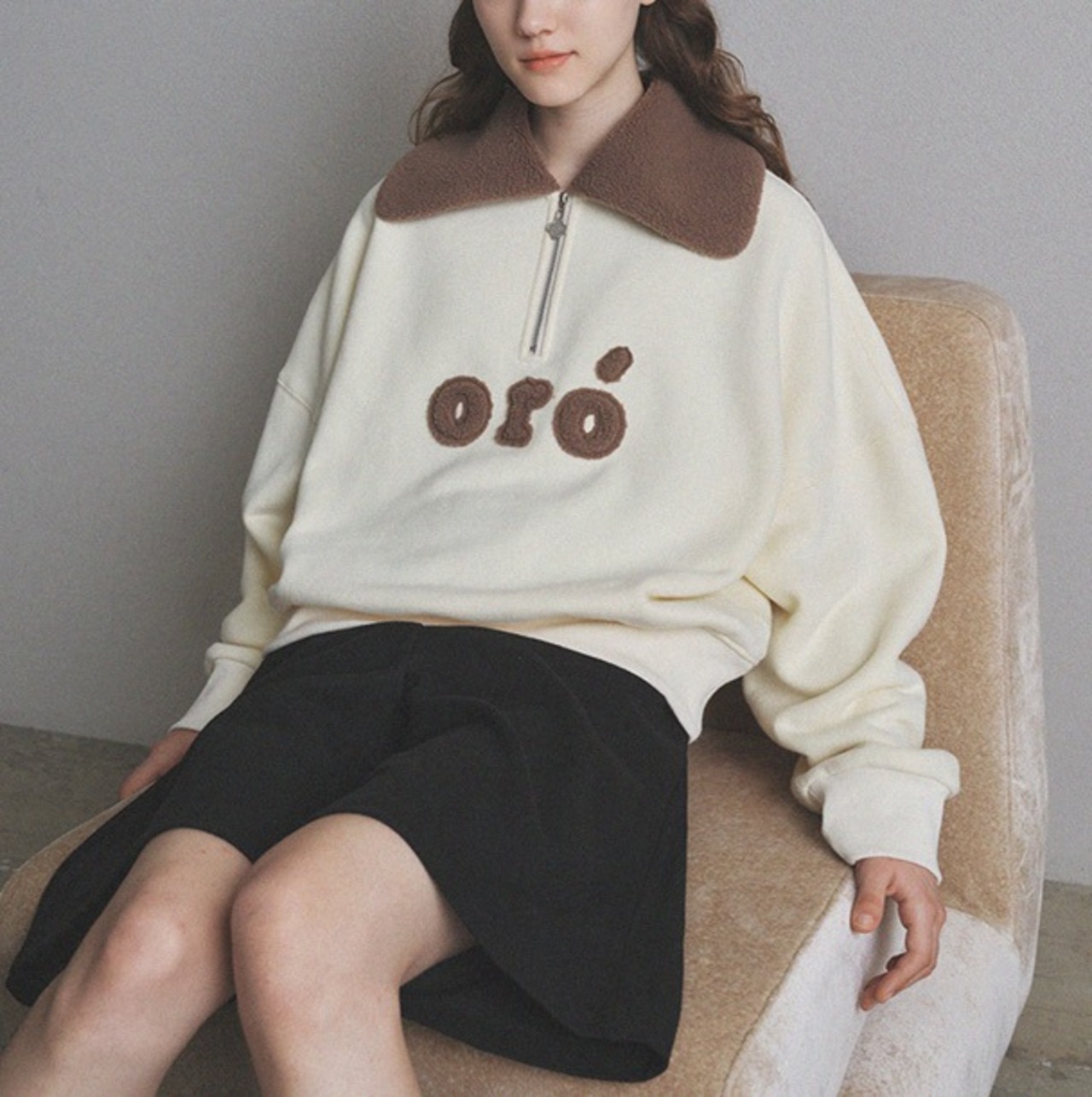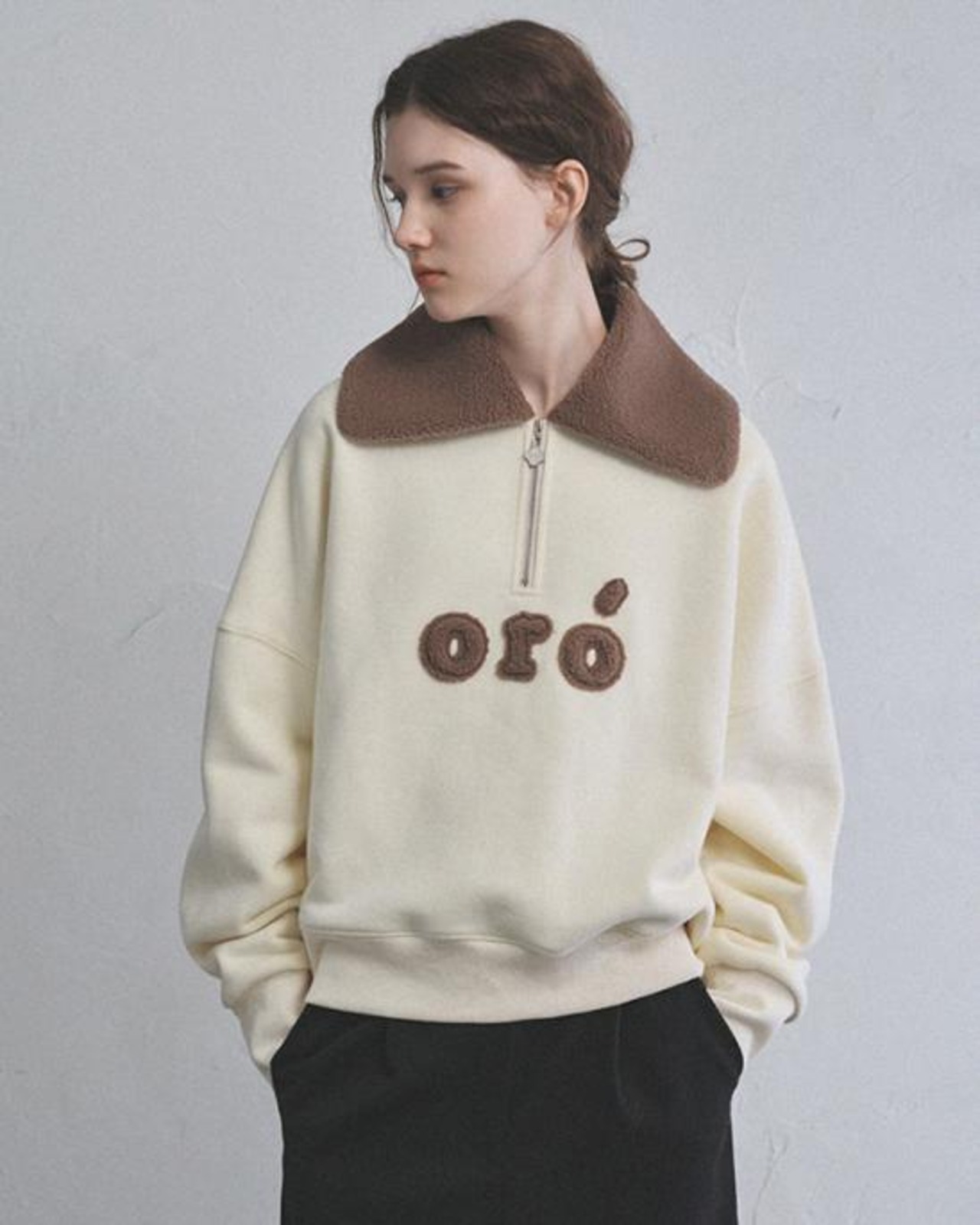 韓国 ORO レディースファッション トップス スウェット トレーナー APEER SHEARING FLEECE ANORAK ホワイト