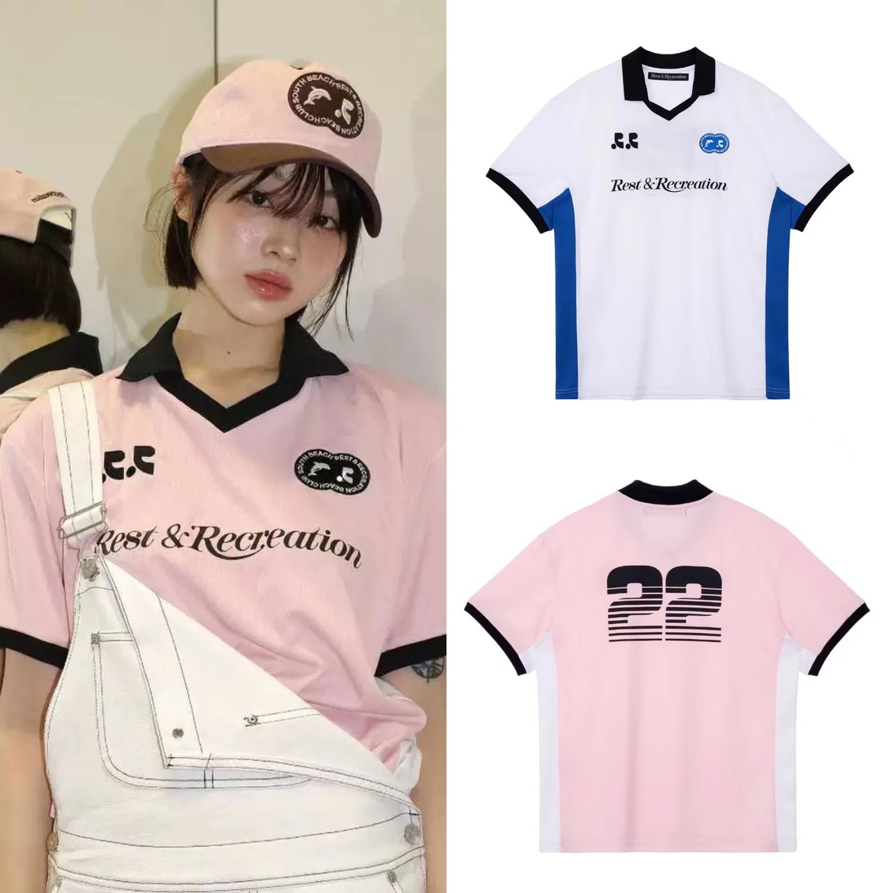 韓国 人気 休息とレクリエーション Tシャツ Rest COLLAR JERSEY TOP